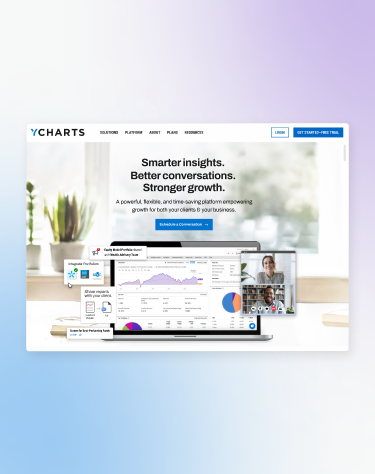 To help YCharts marketing identity soar to new heights, we leveraged the product’s full color system and a font that was bold and attention-grabbing. Thinking about metaphors for research and the complexity of the financial world, we created a graphic system to use throughout the site. This included background styles, secondary elements, and icons. To ensure the updated visuals were cohesive across channels, we provided style recommendations for social media graphics and blog post imagery.
